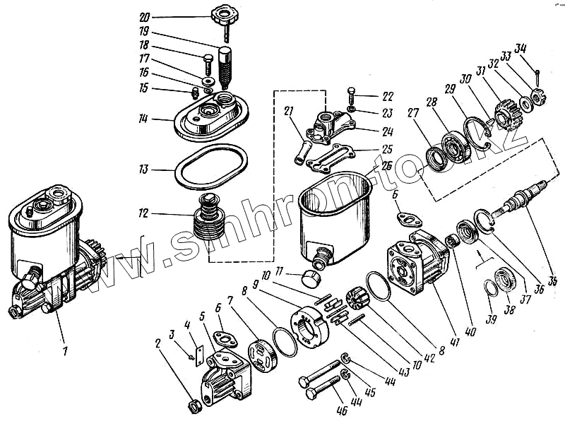Каталог запасных частей к технике: Камский автозавод 43101. Насос гидроусилителя руля левого вращения 53212-3407200