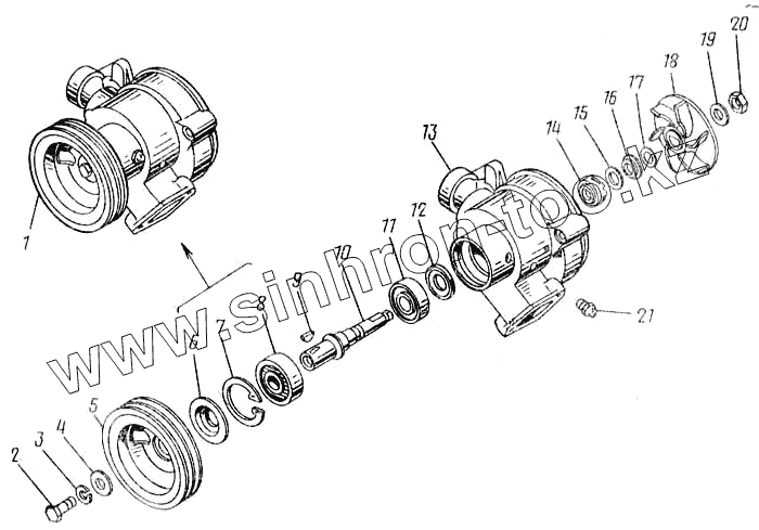Каталог запасных частей к технике: Камский автозавод 43101. Насос водяной 740.1307010-02