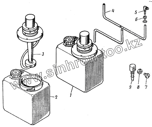 Шприц для смазки, канистры, огнетушитель, бачок, утеплитель передка, насос топливоперекачивающий и приспособление для накачивания шин