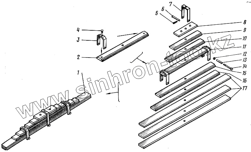 Каталог запасных частей к технике: Камский автозавод 43101. Рессора задняя 5320-2912007-10