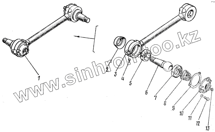 Каталог запасных частей к технике: Камский автозавод 43101. Штанга реактивная с пальцами 4310-2919012