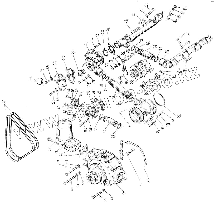 Каталог запасных частей к технике: Камский автозавод 43101. Система охлаждения двигателя