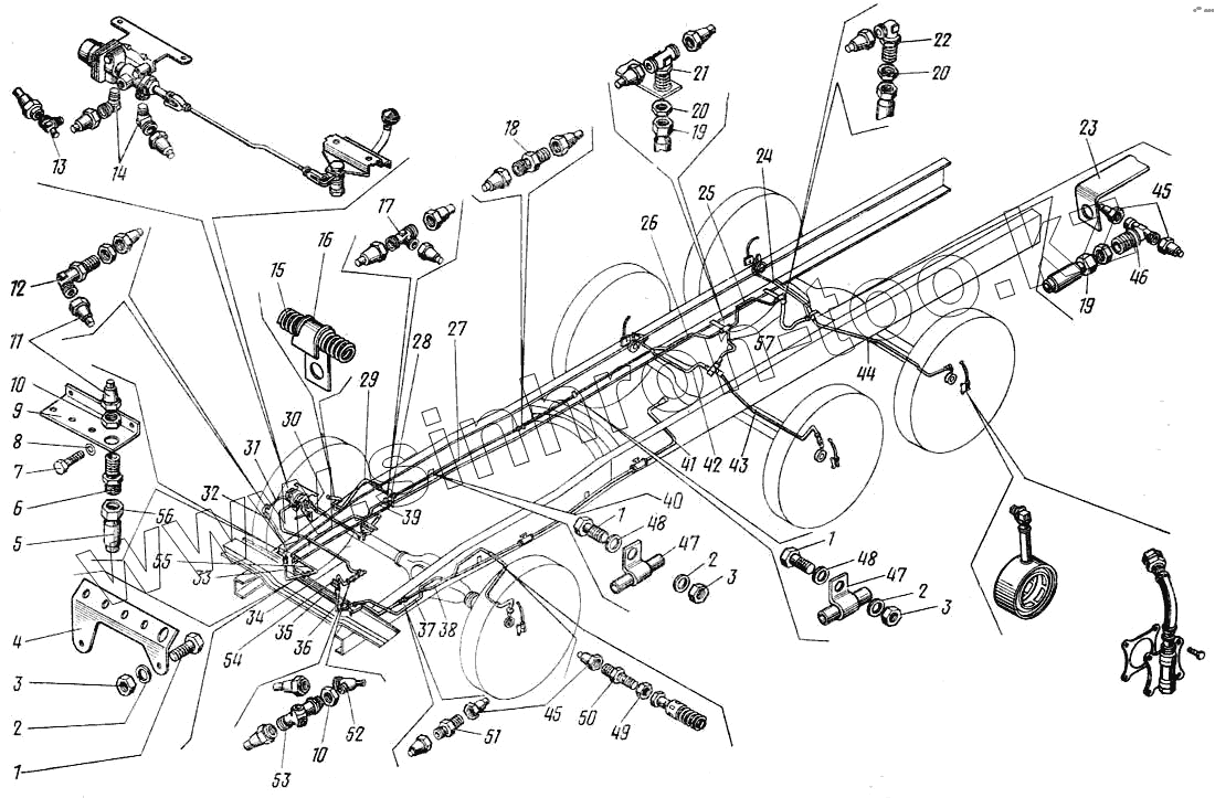 Каталог запасных частей к технике: Камский автозавод 43101. Трубопроводы системы накачивания шин