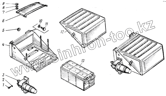 Каталог запасных частей к технике: Камский автозавод 43101. Установка батарей аккумуляторных и выключателя массы