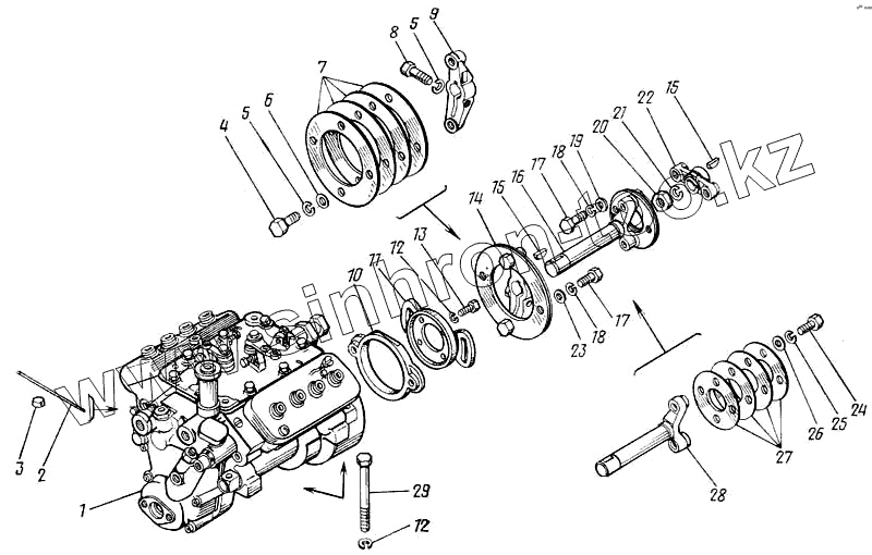 Каталог запасных частей к технике: Камский автозавод 43101. Установка и привод ТНВД