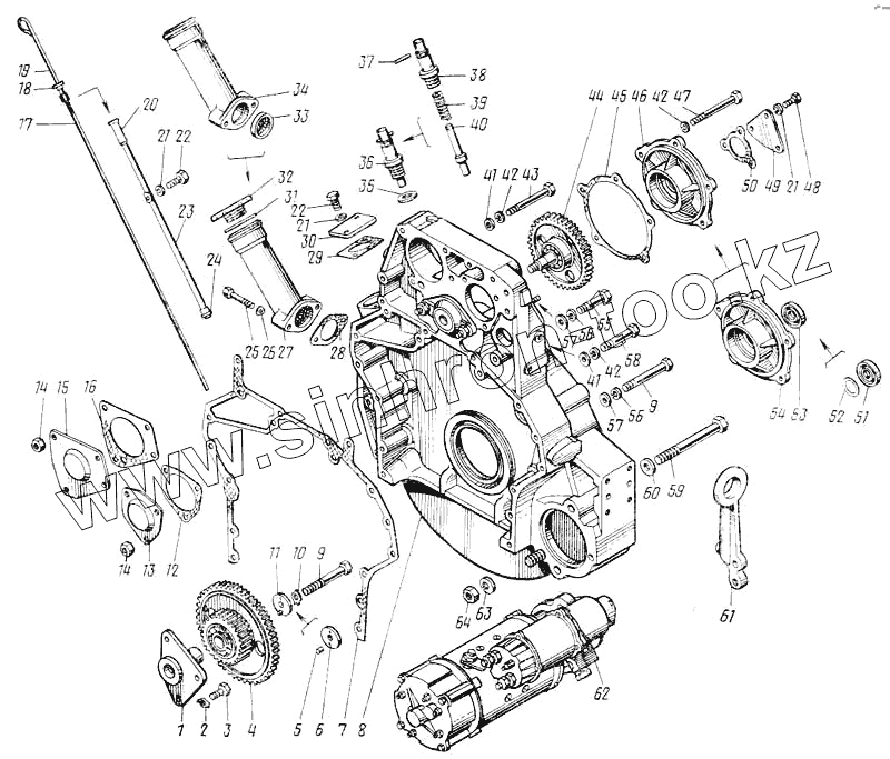 Каталог запасных частей к технике: Камский автозавод 43101. Установка картера маховика