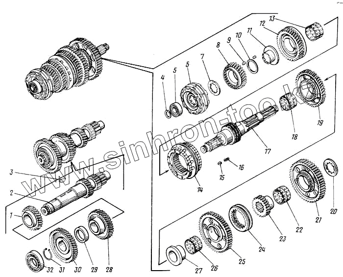 Каталог запасных частей к технике: Камский автозавод 43101. Валы и шестерни коробки передач