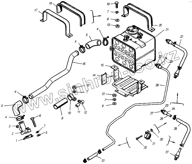 Каталог запасных частей к технике: Камский автозавод 4310. Бачок расширительный и трубопроводы