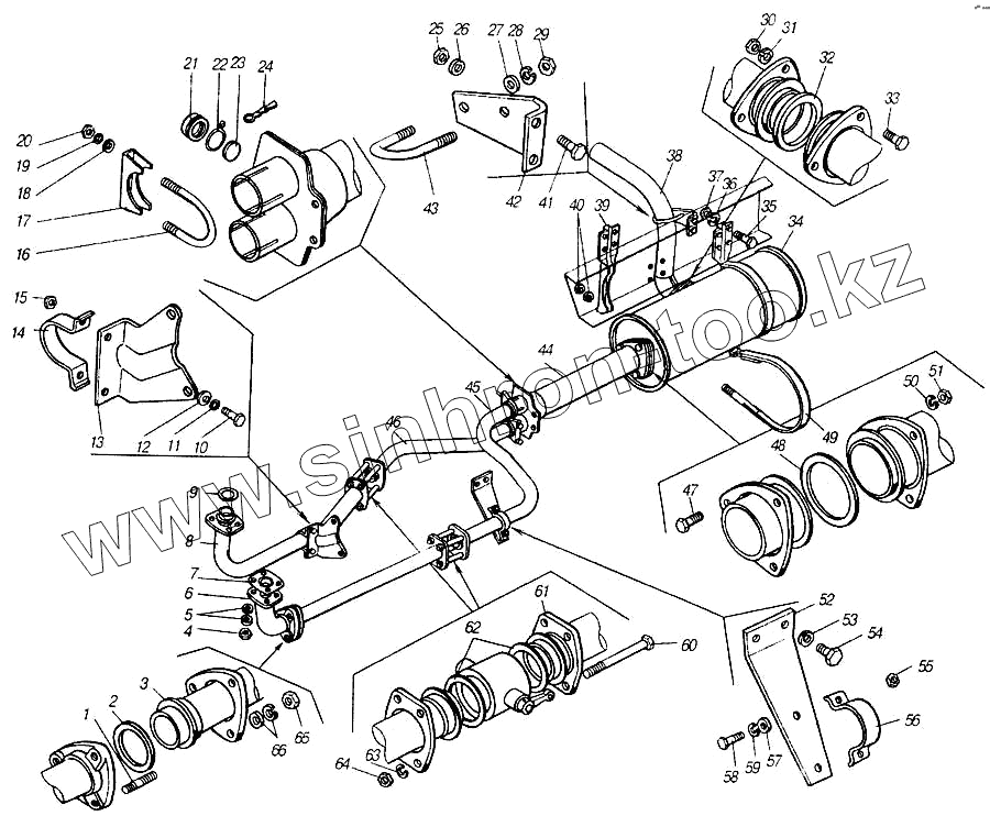 Каталог запасных частей к технике: Камский автозавод 4310. Глушитель выхлопа