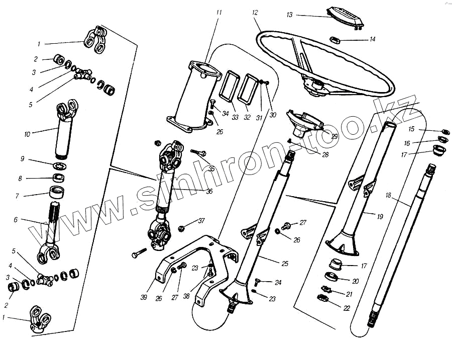 Каталог запасных частей к технике: Камский автозавод 4310. Колесо рулевое, крепление рулевого управления