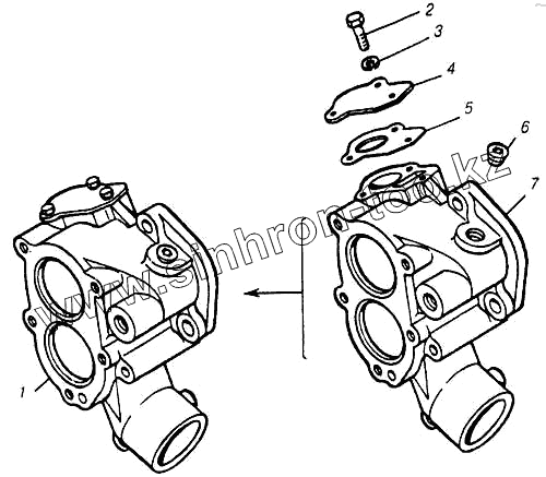 Каталог запасных частей к технике: Камский автозавод 4310. Коробка водяная