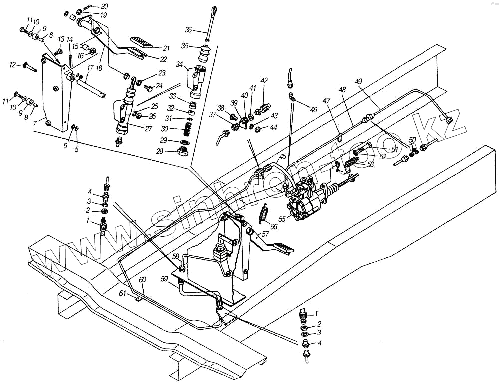 Каталог запасных частей к технике: Камский автозавод 4310. Привод управления сцеплением