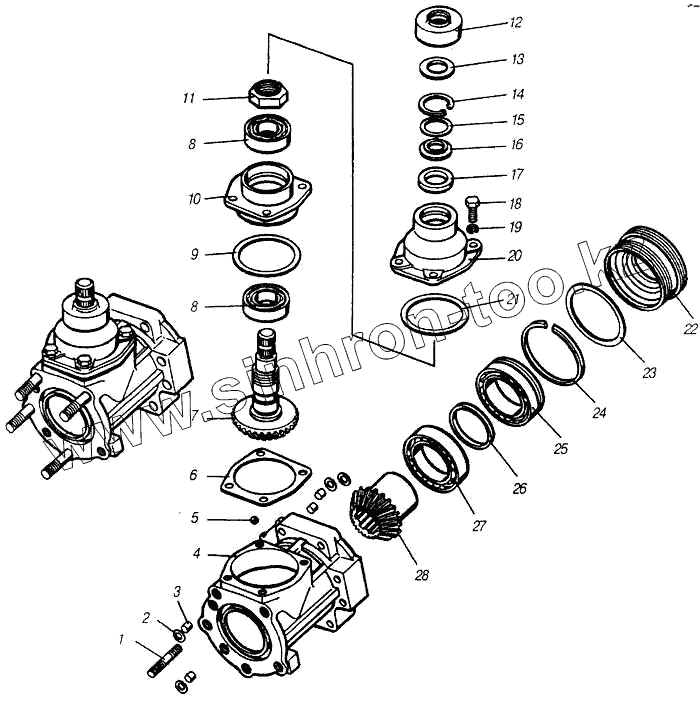 Каталог запасных частей к технике: Камский автозавод 4310. Редуктор угловой в сборе