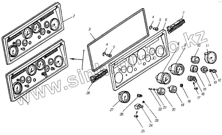 Каталог запасных частей к технике: Камский автозавод 4310. Щиток приборов