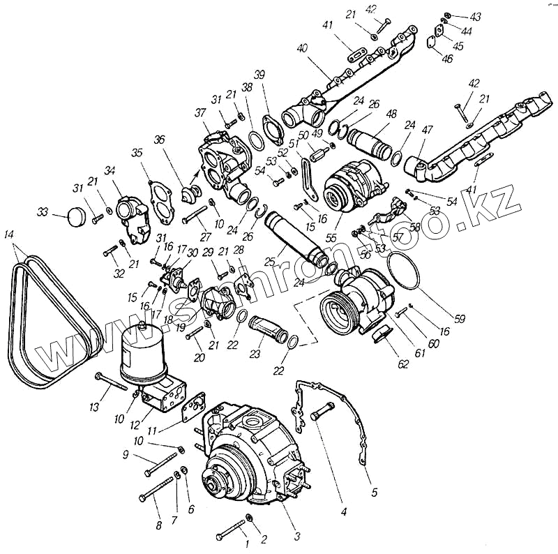 Каталог запасных частей к технике: Камский автозавод 4310. Система охлаждения двигателя