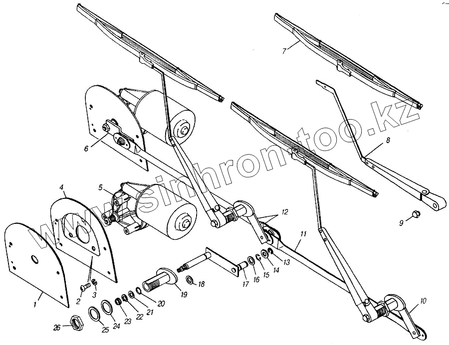 Каталог запасных частей к технике: Камский автозавод 4310. Стеклоочиститель и его привод