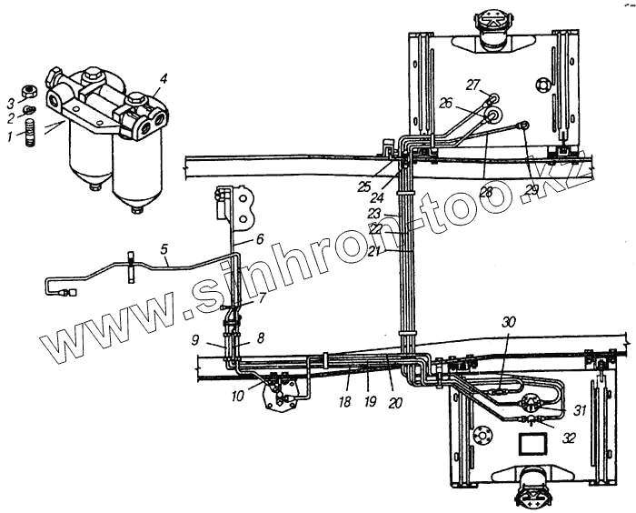 | 32 | 5410-1104136 | Трубка слива топлива в бак с угольником в сборе |