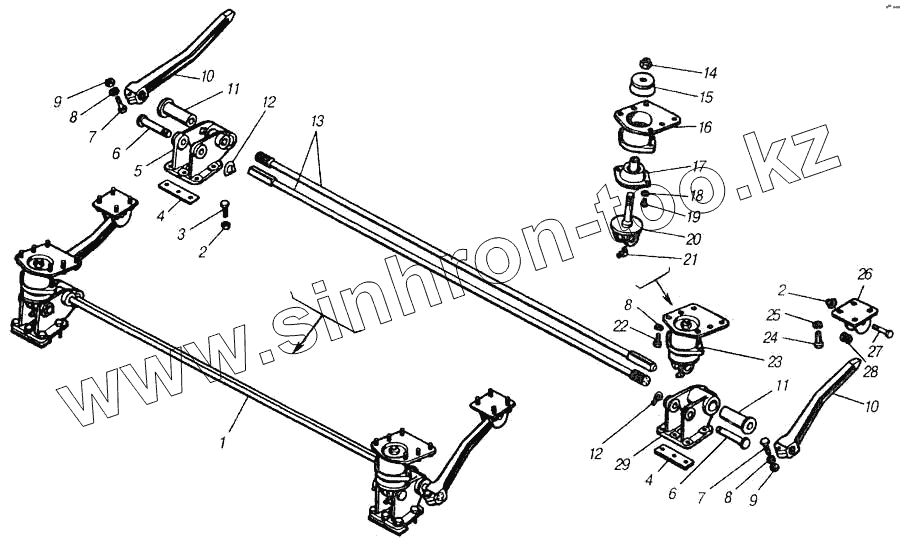 Каталог запасных частей к технике: Камский автозавод 4310. Установка кронштейнов и механизма уравновешивания кабины