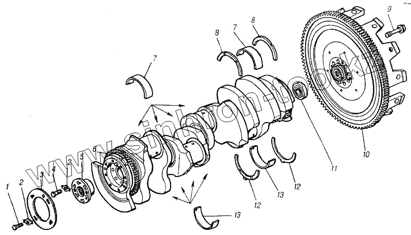 Каталог запасных частей к технике: Камский автозавод 4310. Установка вала коленчатого с маховиком