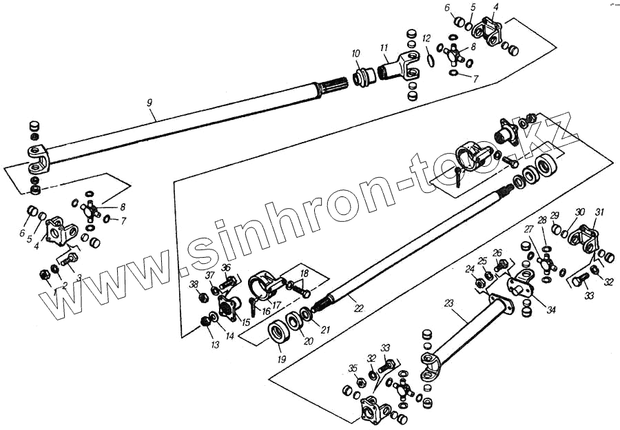 Каталог запасных частей к технике: Камский автозавод 4310. Валы карданные лебедки