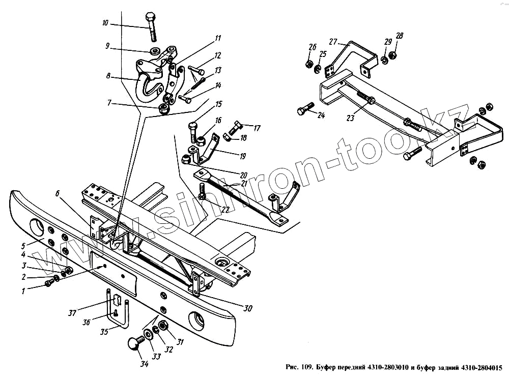 Каталог запасных частей к технике: Камский автозавод 4310. Буфер передний и буфер задний