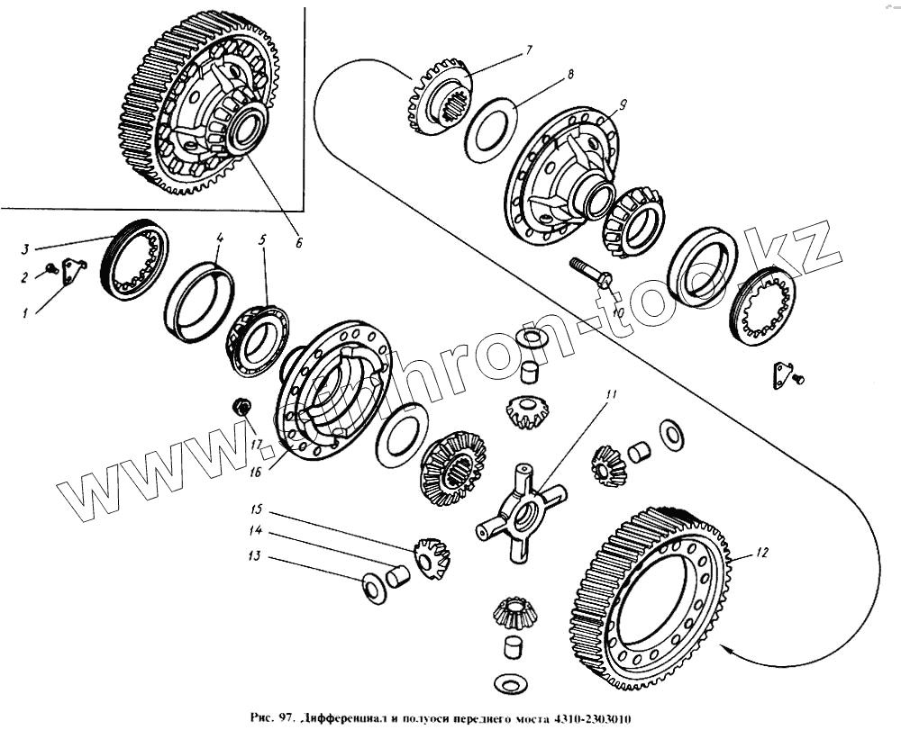 Каталог запасных частей к технике: Камский автозавод 4310. Дифференциал и полуоси переднего моста
