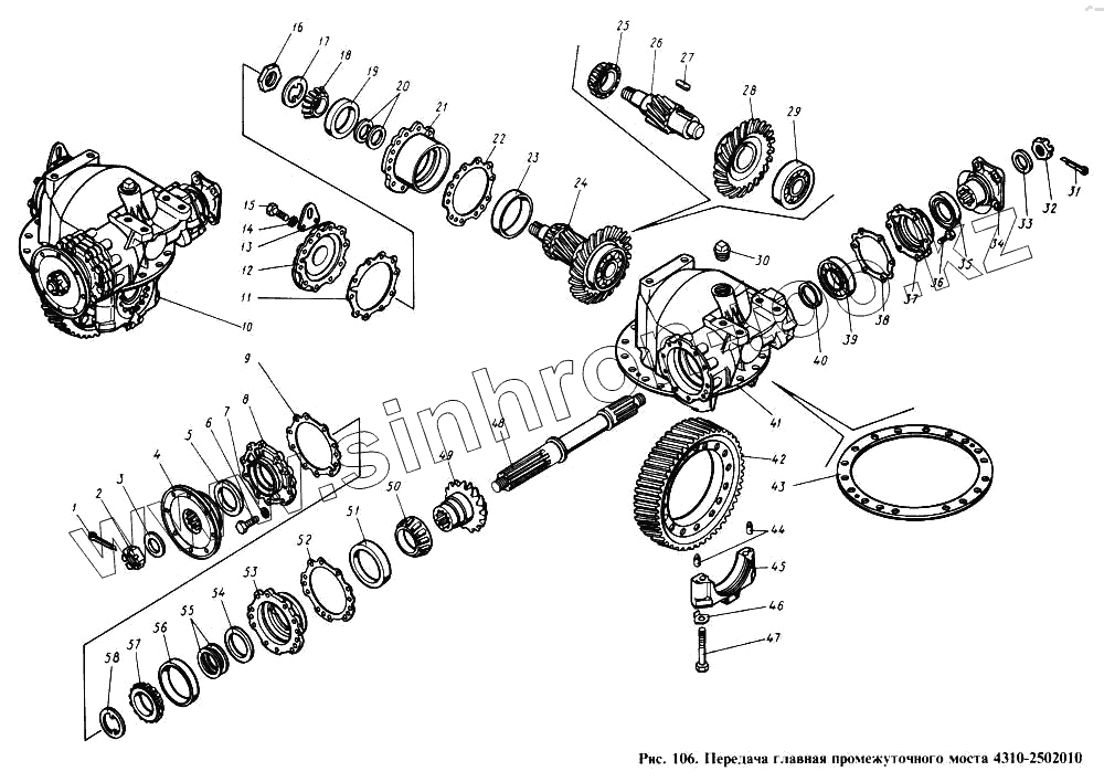 Каталог запасных частей к технике: Камский автозавод 4310. Главная передача промежуточного моста