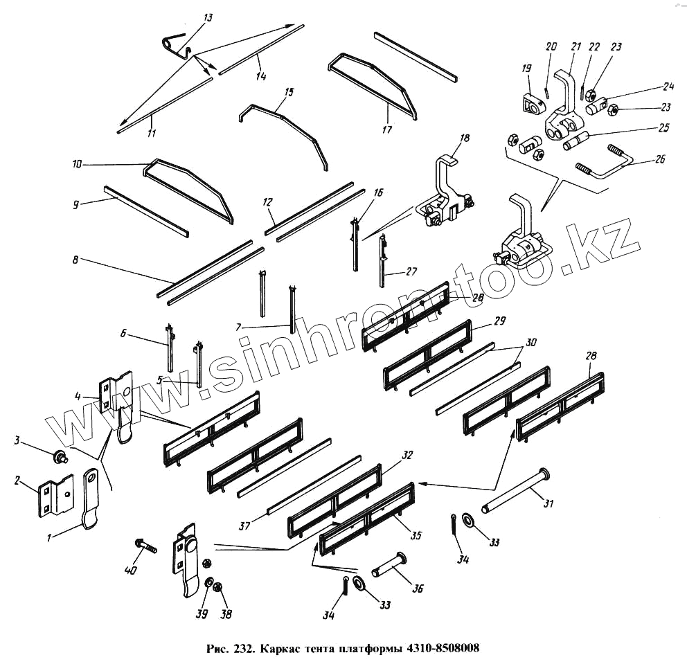 Каталог запасных частей к технике: Камский автозавод 4310. Каркас тента платформы