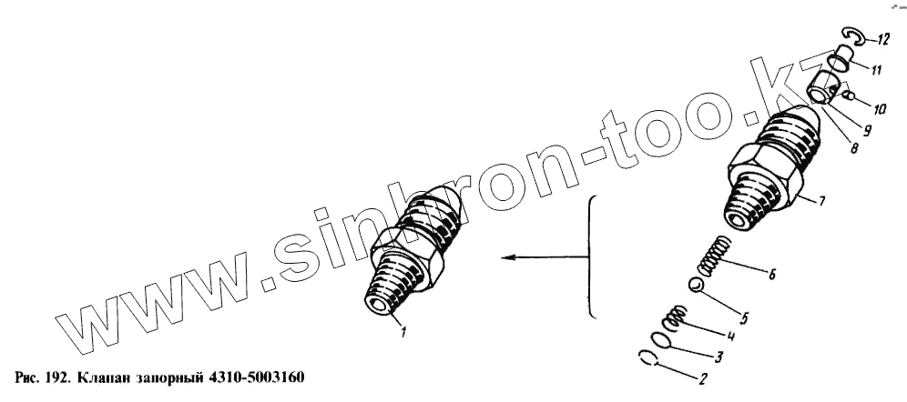 Каталог запасных частей к технике: Камский автозавод 4310. Клапан запорный