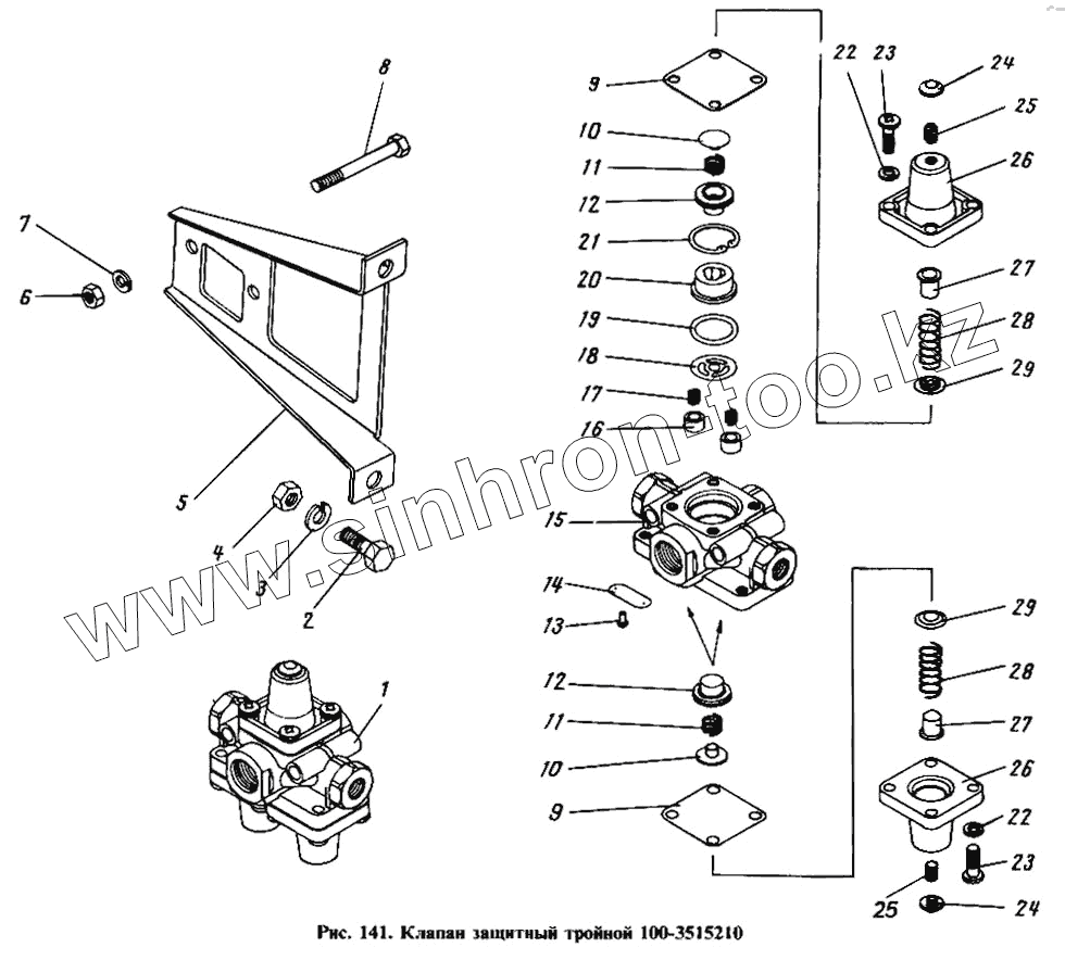 Каталог запасных частей к технике: Камский автозавод 4310. Клапан защитный тройной