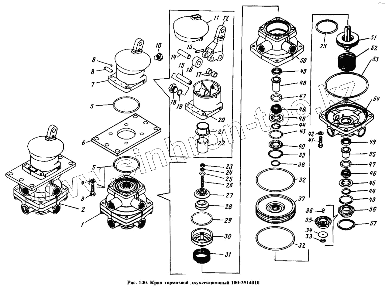 Каталог запасных частей к технике: Камский автозавод 4310. Кран тормозной двухсекционный