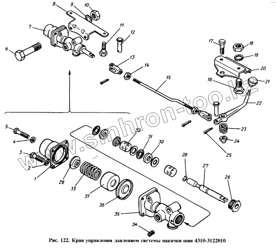 Каталог запасных частей к технике: Камский автозавод 4310. Кран управления давлением системы накачивания шин