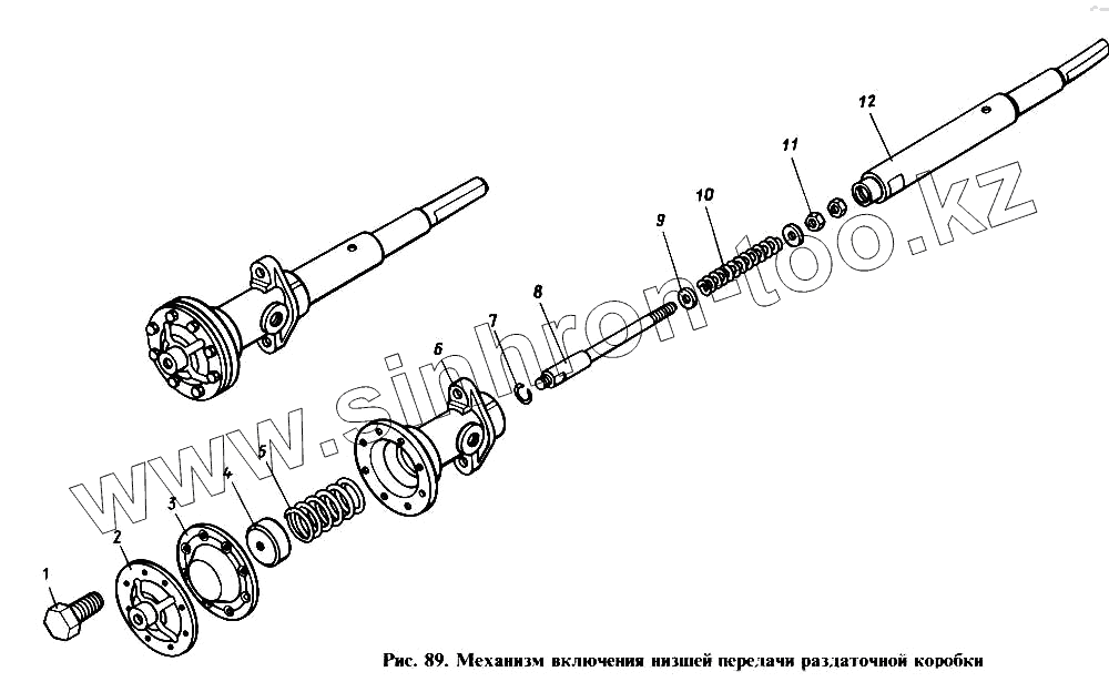 Каталог запасных частей к технике: Камский автозавод 4310. Механизм включения низшей передачи раздаточной коробки