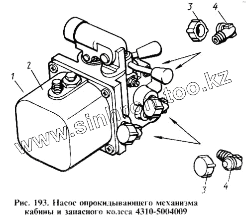 Каталог запасных частей к технике: Камский автозавод 4310. Насос опрокидывающего механизма кабины и запасного колеса
