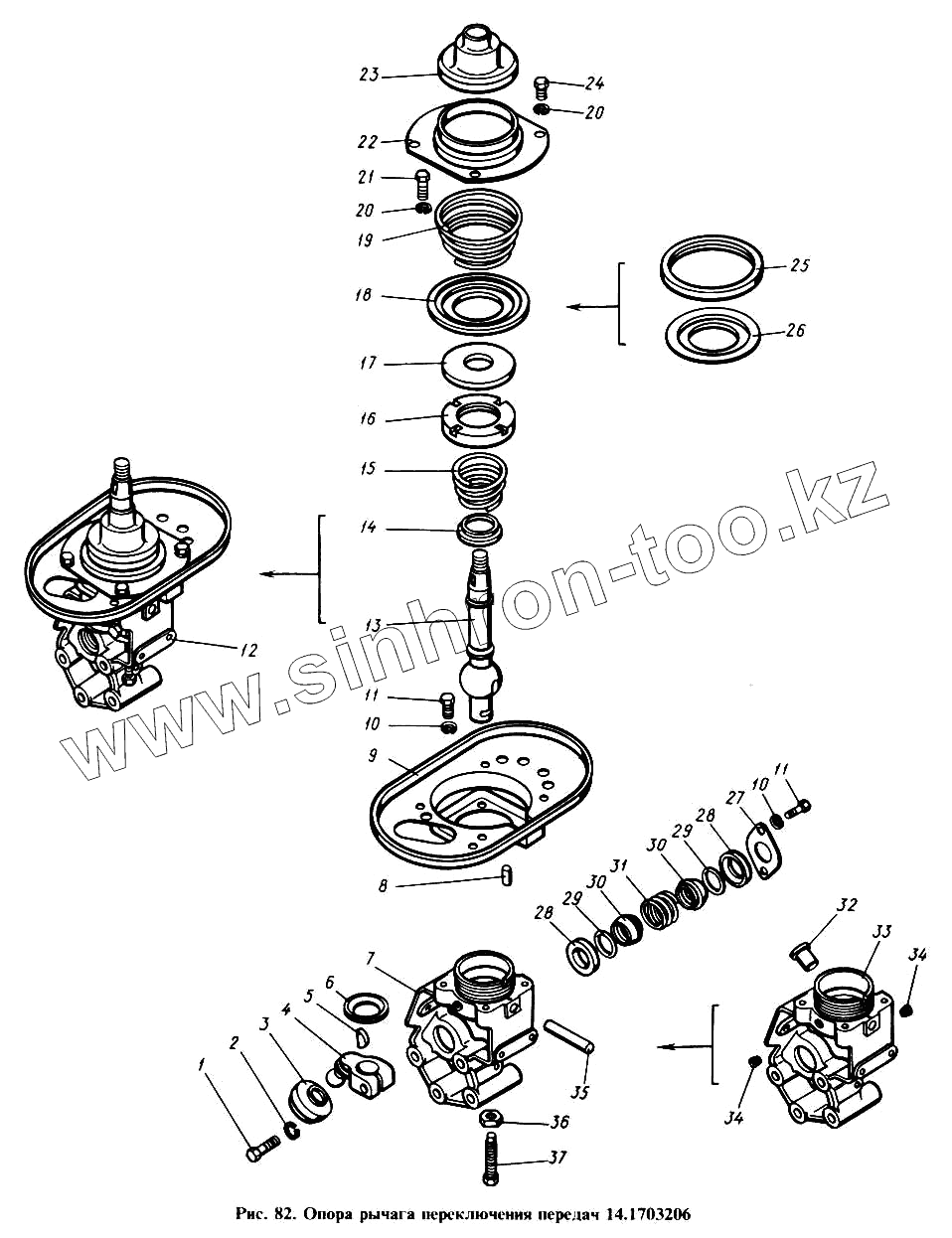 Каталог запасных частей к технике: Камский автозавод 4310. Опора рычага переключения передач