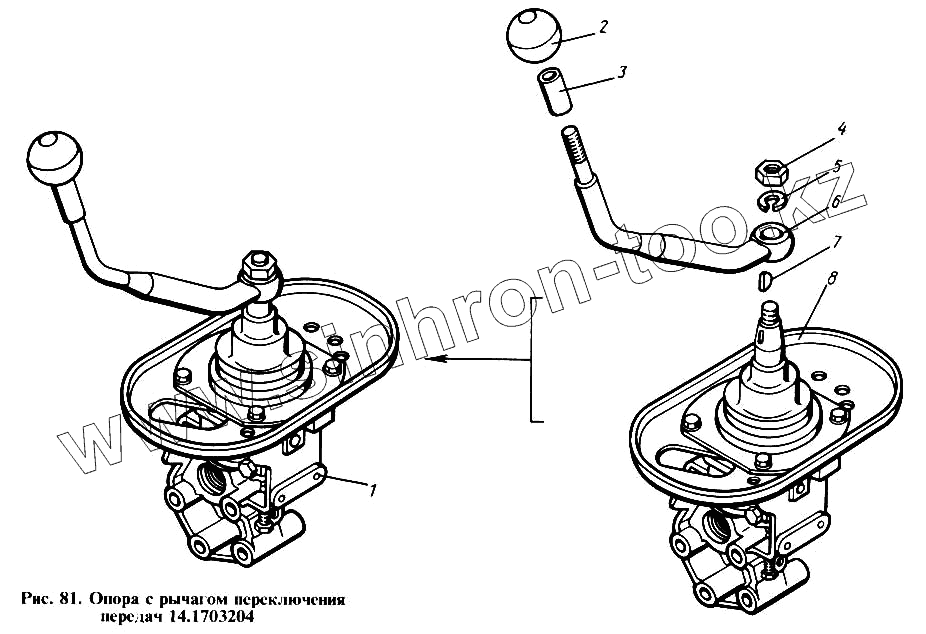 Каталог запасных частей к технике: Камский автозавод 4310. Опора с рычагом переключения передач