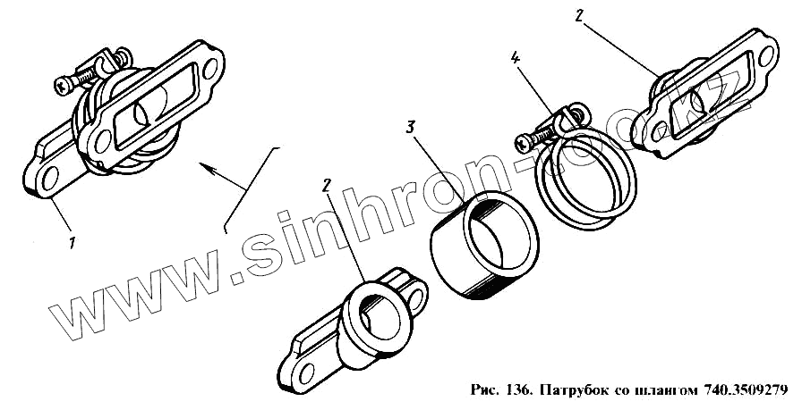Каталог запасных частей к технике: Камский автозавод 4310. Патрубок со шлангом
