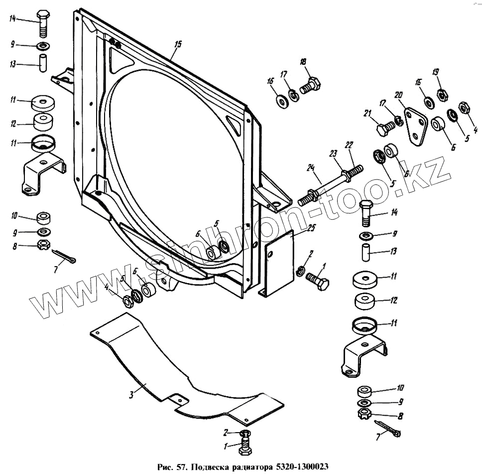 Каталог запасных частей к технике: Камский автозавод 4310. Подвеска радиатора