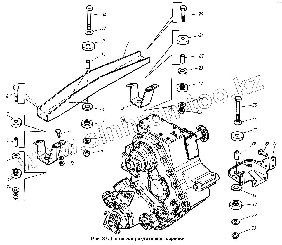 Каталог запасных частей к технике: Камский автозавод 4310. Подвеска раздаточной коробки