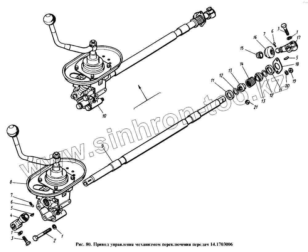 Каталог запасных частей к технике: Камский автозавод 4310. Привод управления механизмом переключения передач