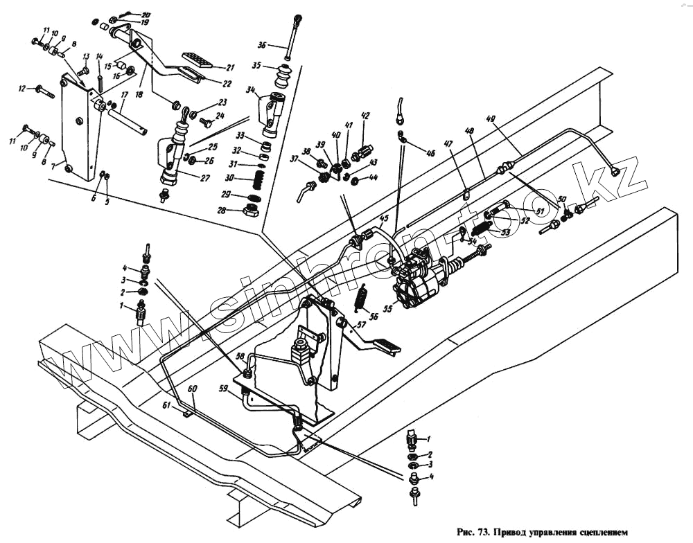 Каталог запасных частей к технике: Камский автозавод 4310. Привод управления сцеплением