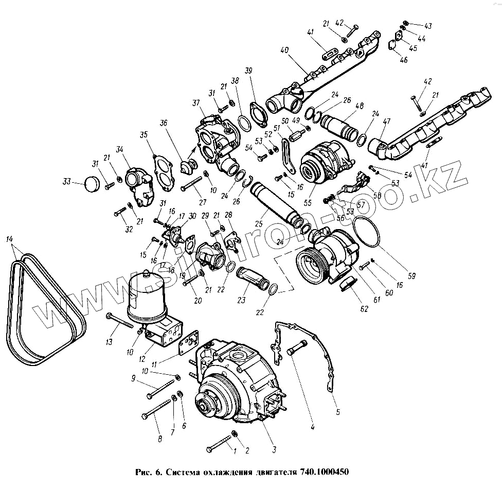 Каталог запасных частей к технике: Камский автозавод 4310. Система охлаждения двигателя