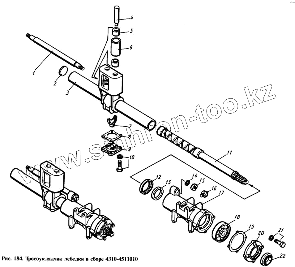 Каталог запасных частей к технике: Камский автозавод 4310. Тросоукладчик лебедки в сборе