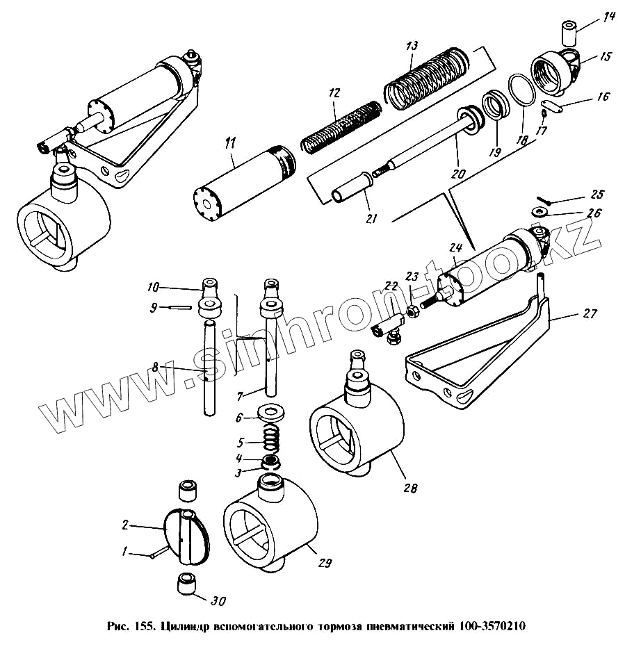 Каталог запасных частей к технике: Камский автозавод 4310. Цилиндр вспомогательного тормоза пневматический