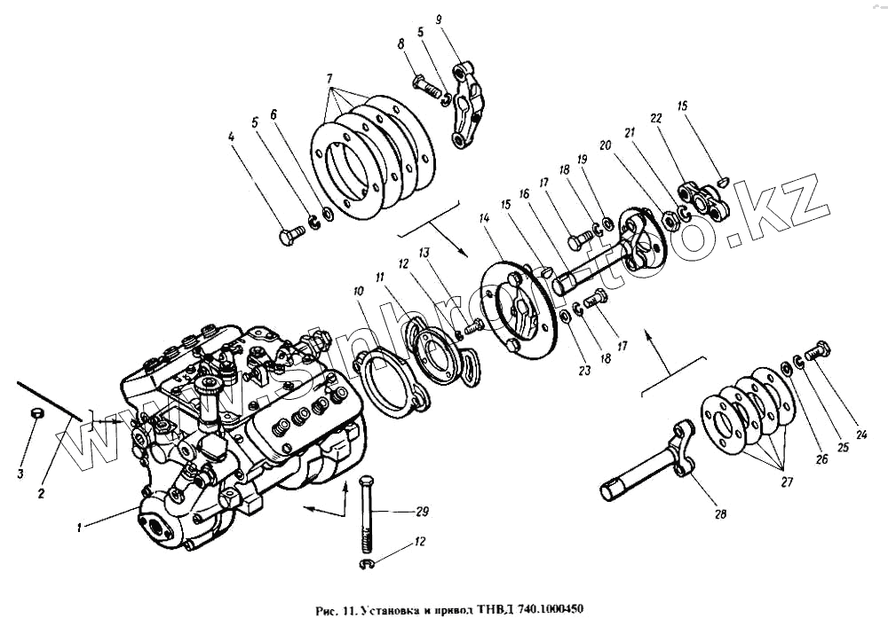 Каталог запасных частей к технике: Камский автозавод 4310. Установка и привод ТНВД