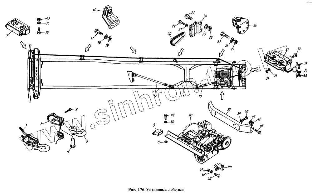 Каталог запасных частей к технике: Камский автозавод 4310. Установка лебедки