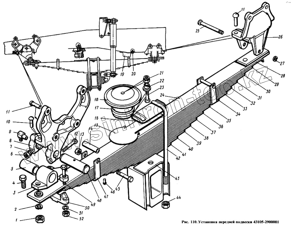 Каталог запасных частей к технике: Камский автозавод 4310. Установка передней подвески