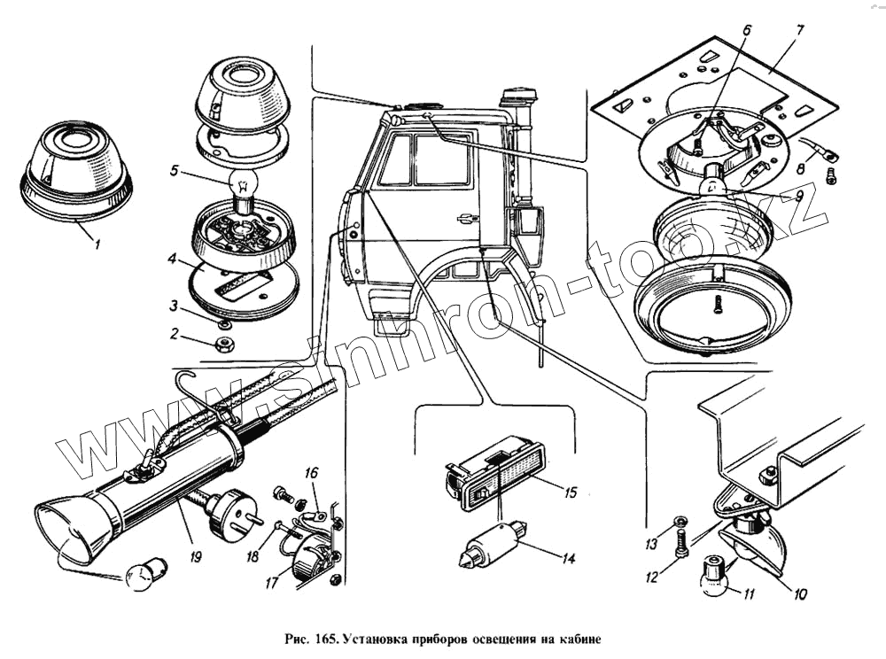 Каталог запасных частей к технике: Камский автозавод 4310. Установка приборов освещения на кабине