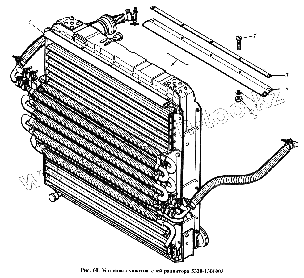 Каталог запасных частей к технике: Камский автозавод 4310. Установка уплотнителей радиатора