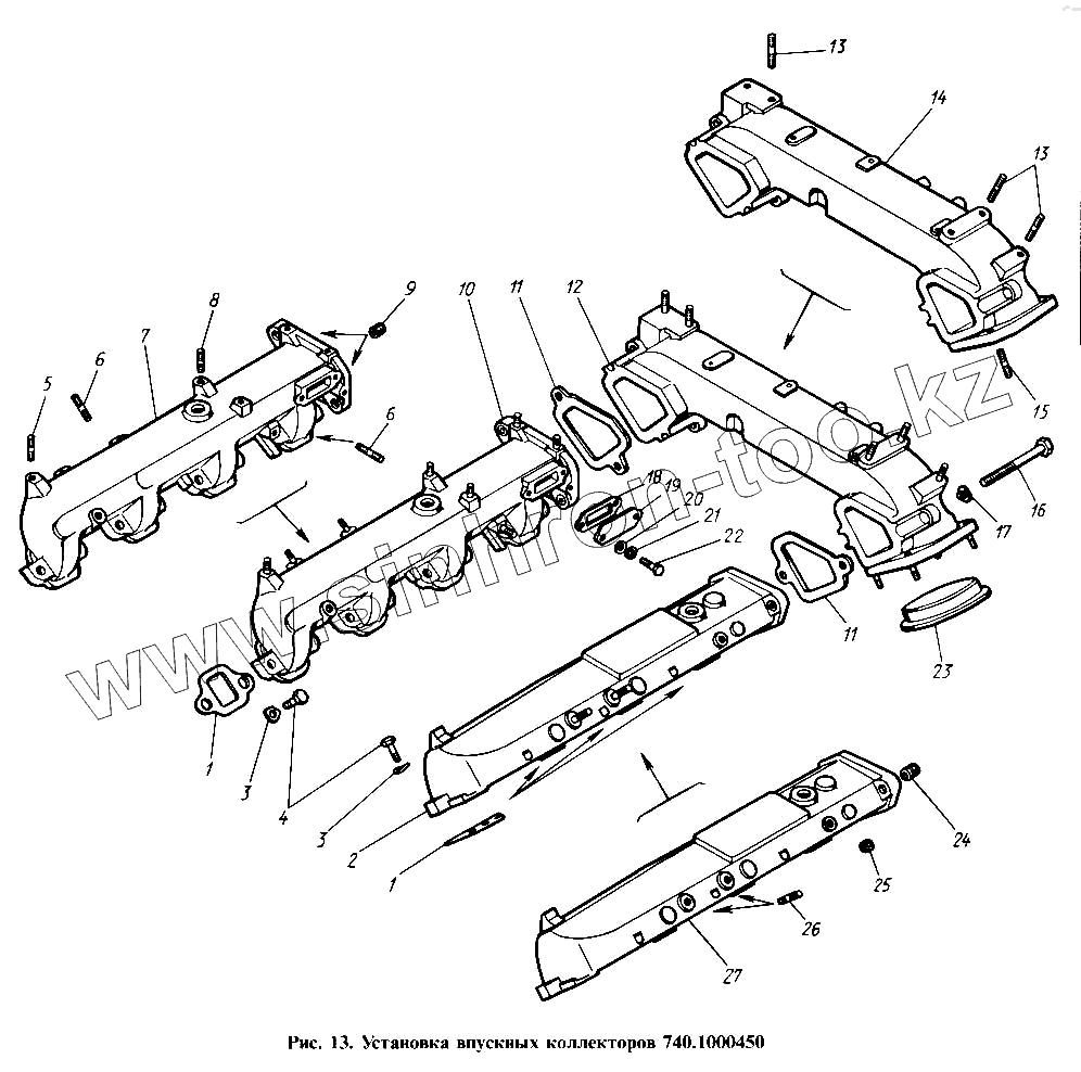 Каталог запасных частей к технике: Камский автозавод 4310. Установка впускных коллекторов